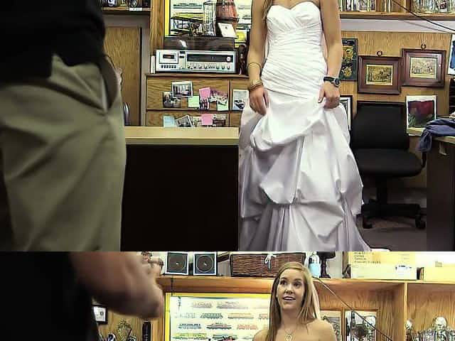 Babe in wedding dress fucked by pawn guy to earn extra money