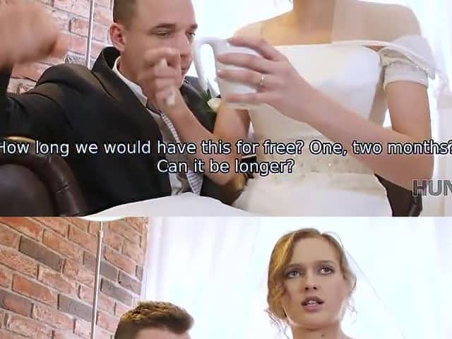 HUNT4K. Cute teen bride gets fucked for cash in front of her groom