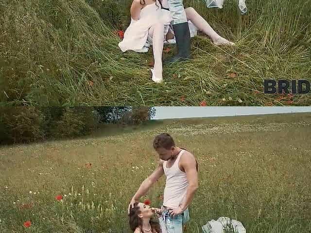 BRIDE4K. Her fiancé was so boring so that babe decided to run away and suck a stranger’s jock in the field