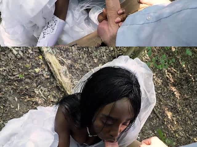 Cheating black bride gets creampie at the forest
