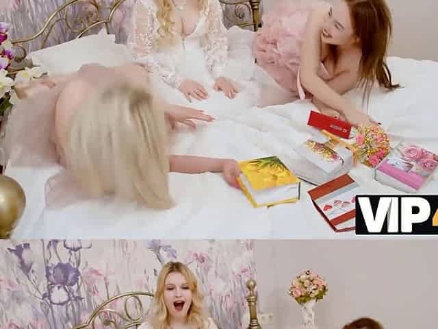 VIP4K. Slutty Russian bride Polly Yangs is having a threesome right before her wedding
