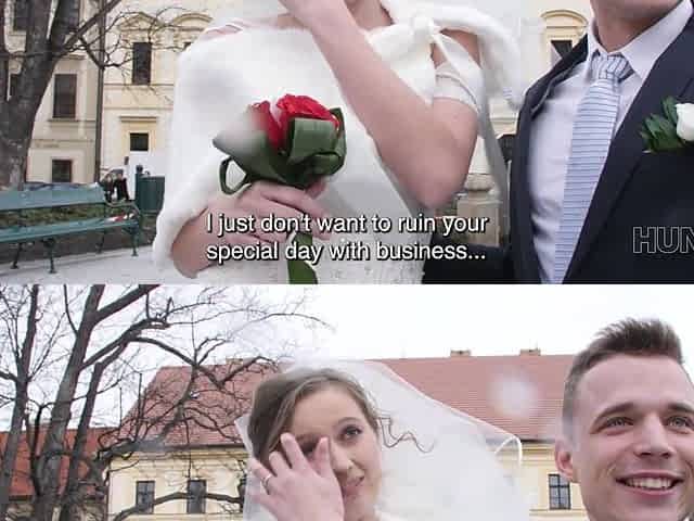 DEBT4k. Sweet blonde drilled by hung collector right after the wedding