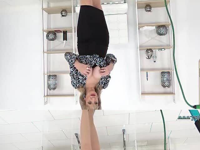 Blonde amateur Raphaella drops her pink underwear in the kitchen