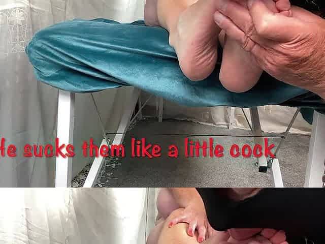 Mrs Aged Feet allowing her foot hunk to suck her toes