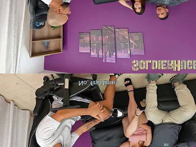 Fitness Rooms FFM threesome with big dick Latino