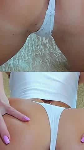 Peeing Close up After Removing White Panties Pussy Cleaning Command