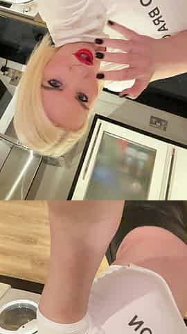 Glamorous Cherry English has a risqué dining experience in high heels and stockings