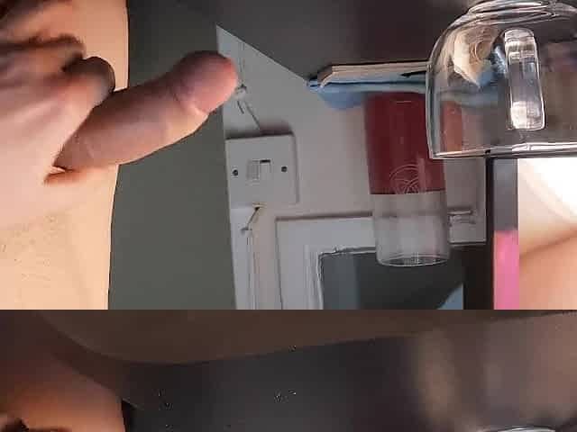 Wanking a load into a glass mug