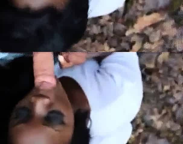 Hot Blonde Teen Dogging Slut Sucks off Two Big Cock Studs in the Woods