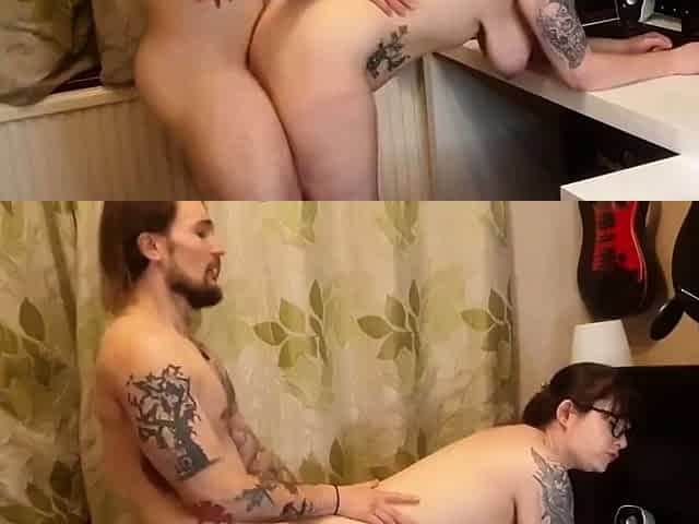 POV Threesome Hot Gothic Girls with Glasses Anal, ATM, Facial