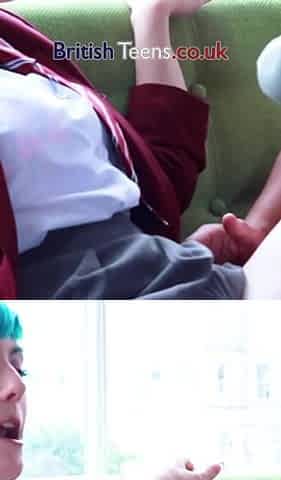 Blue Haired 18 Year Old In School Uniform Edged And Teased