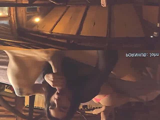 Raven Hair Wife Stripping In Yellow And Pink Bikini