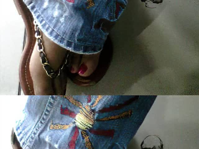 Big load on slut's nylon legs. Sborrata in collant