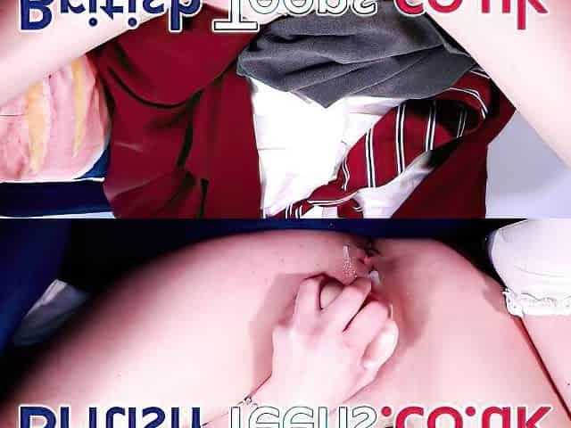 Sexy British girl rubs her tight pussy on webcam