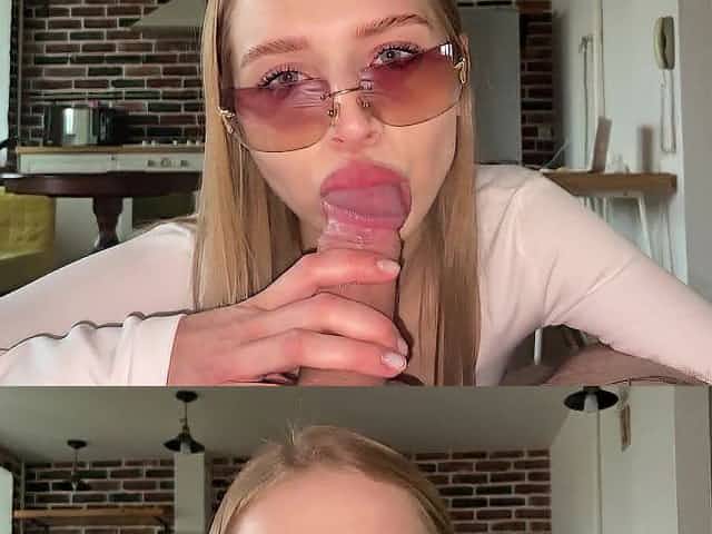 Glamorous wench sucks indecent in her glasses