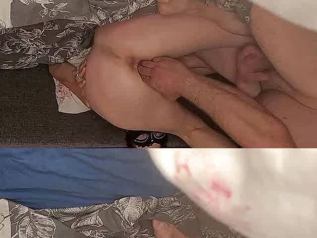 Naughty sex with hubby, he enjoys my pussy while I enjoy his ass