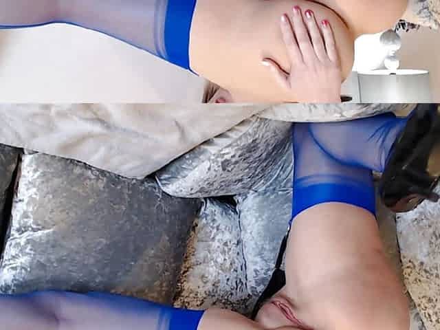 Electric blue nylons, squirt and big dildo action
