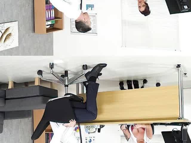 British mature milf enjoys MMF threesome with massive fake boobs and plump labia