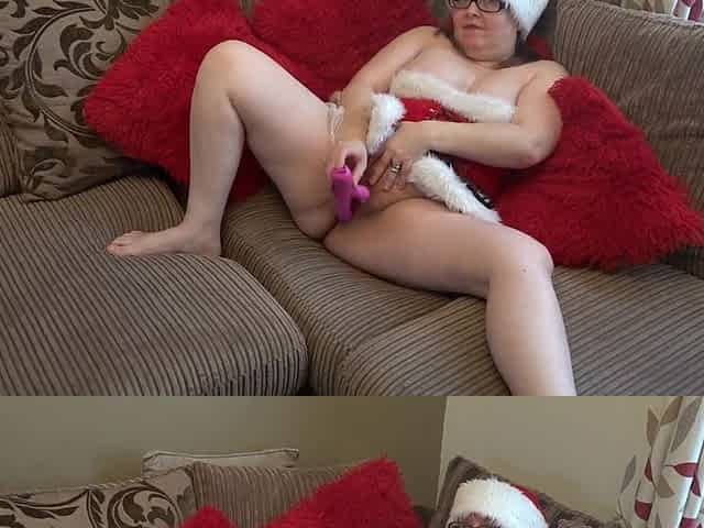Miss Santa Playing with Pink Vibrator Showing Big Boobs