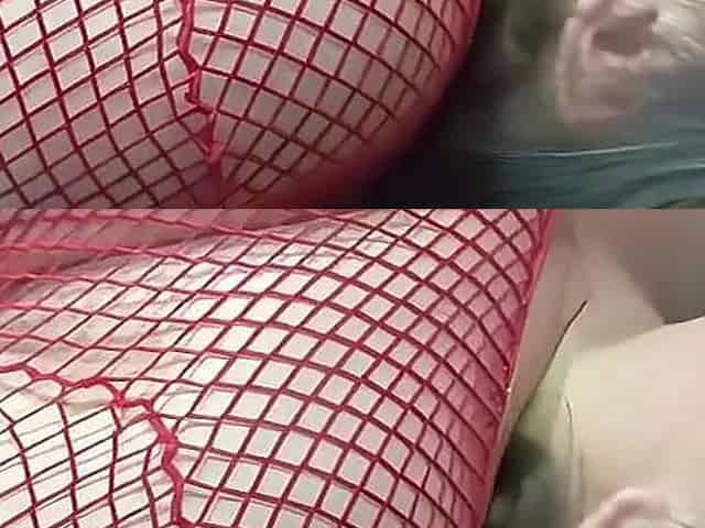 BBW in a Red Fishnet Bodystockings Spreads for the Guys