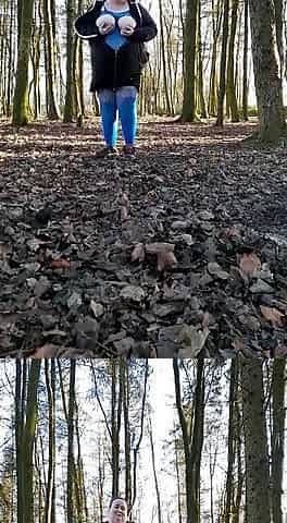 "TheLady flashes and pees in the woods "