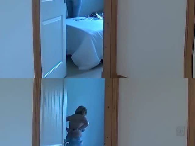 Blond woman on the stair masturbate and talk very sexy for the audience ass