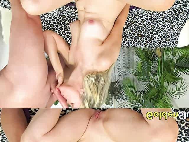 British mature blonde with huge natural tits masturbating alongside her horny friend