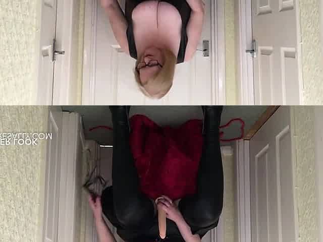 Old granny Sally in her leather look, playing with her sextoy and showing her twat