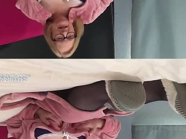 Sally ties her breasts with her nylons