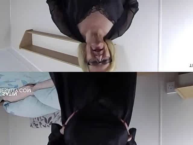 British granny was wearing ebony, latex outfit whilst that babe was masturbating in front of the camera