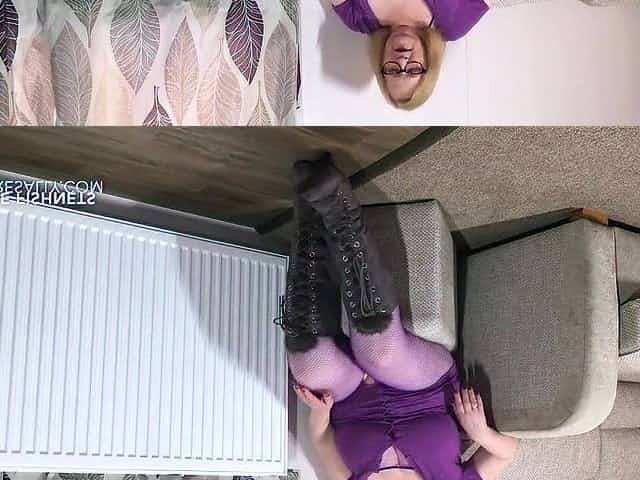 Sally's very latest movie scene in bodystocking and boots