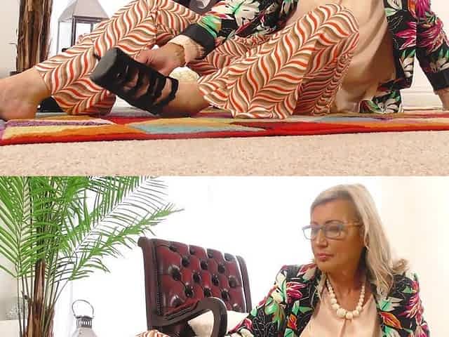 British GILF Sensual Caroline Shows You Her Nylon Clad Sex Holes