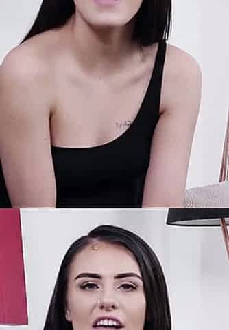 British Brunette hair Girl Cutie Ritchie Takes On Large American Guy
