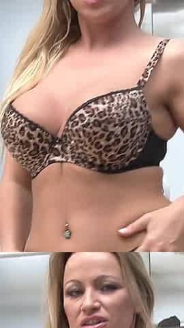 Fleshly British Brunette hair Sophie Dee Pours A Lotion All Over Her Melons!