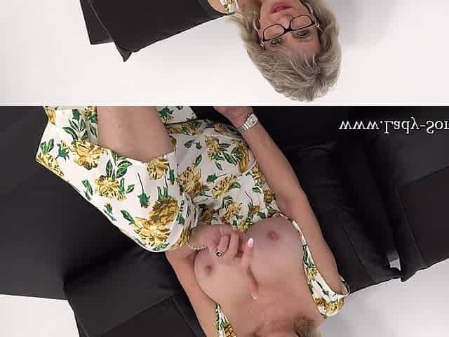 Old lesbian boss with huge tits interviews a young woman