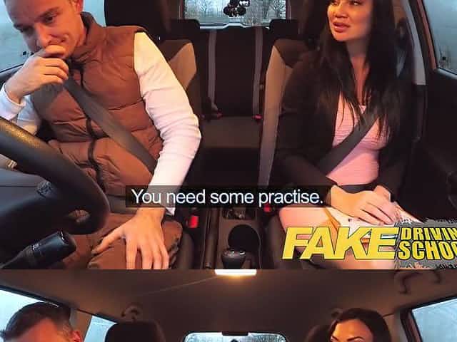 Fake Driving School exam failure ends in 3some double creampie