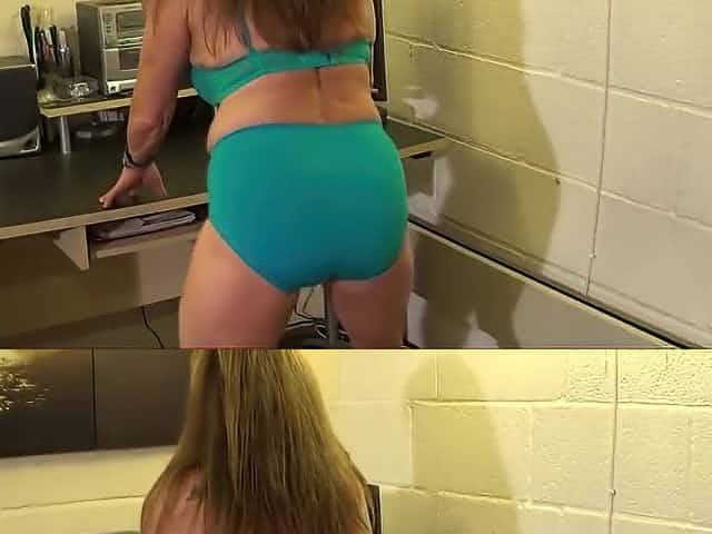 Mature dinner lady shows tight panties upskirt