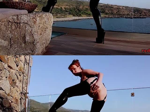 Mature British redhead masturbates on the balcony