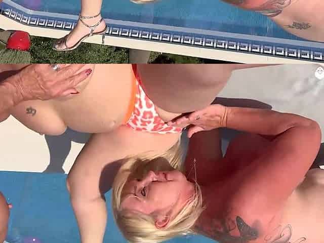 Big-breasted Lesbian Poolside Foursome With Bald pussy Snatch