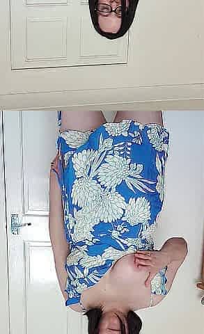 Wife disrobes in her blue summer costume showing off large titties and booty