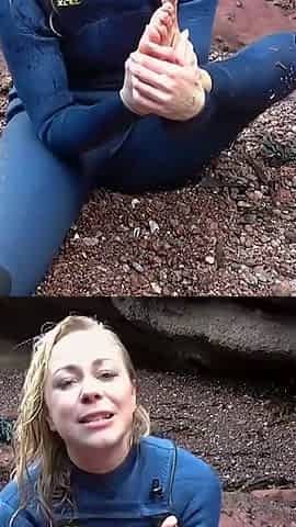 Wetsuit Underwater Dildo Blowjob - Neoprene Masked Suck Slut