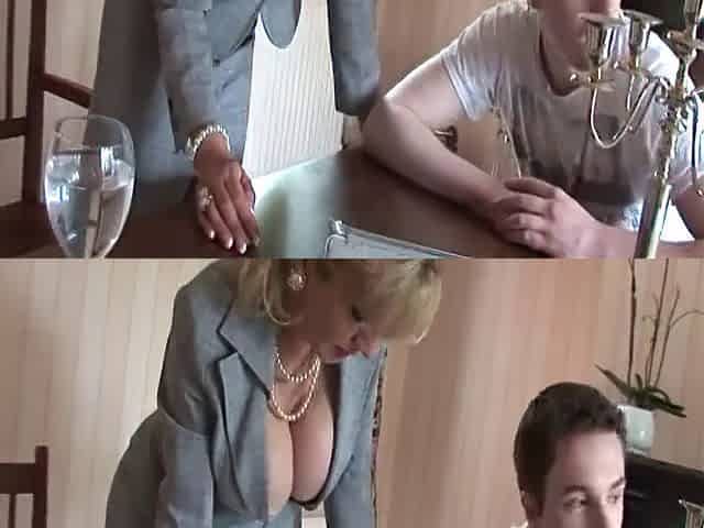 British MILF teases young man with her tits