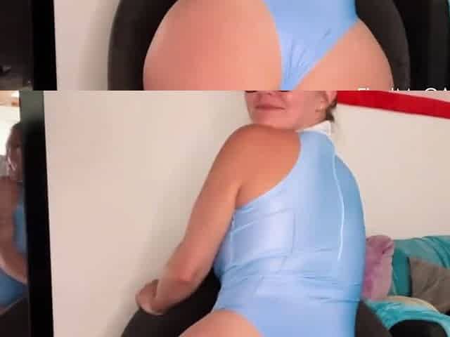 Sucking knob deeply in her blue underware and nylons