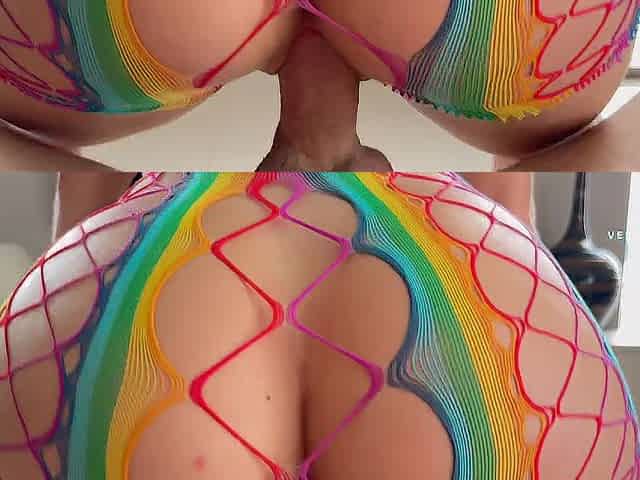 After slipping into sexy fishnets, the horny milf with thick boobs got what she craved