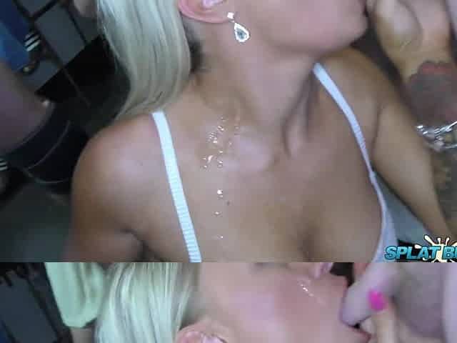 Beautiful Kelly Myers enjoyed her debut bukkake party and went home with a load of nut in her face