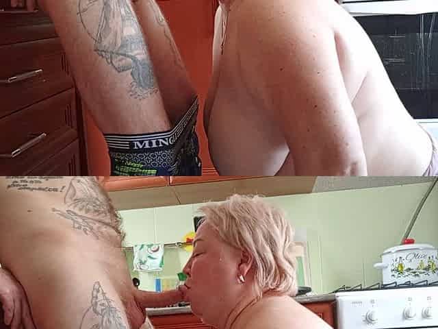 Blowage, mature handjob