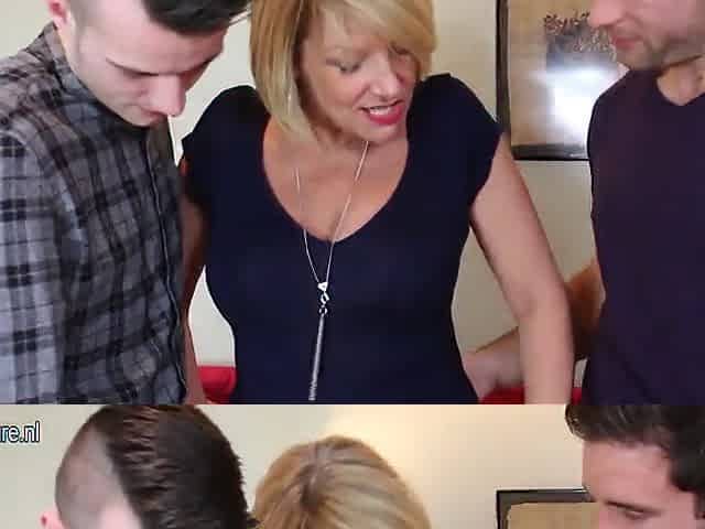 Hot British mother sucking and fucking two young boys