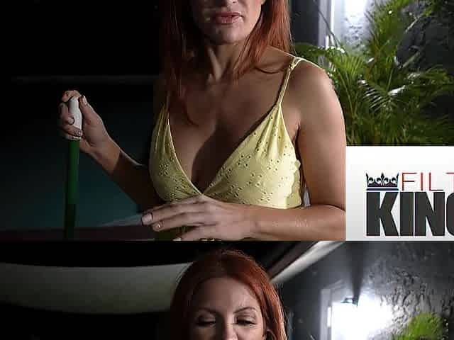 Posh redhead milf Judy gets wild with the pool man in a gonzo adventure