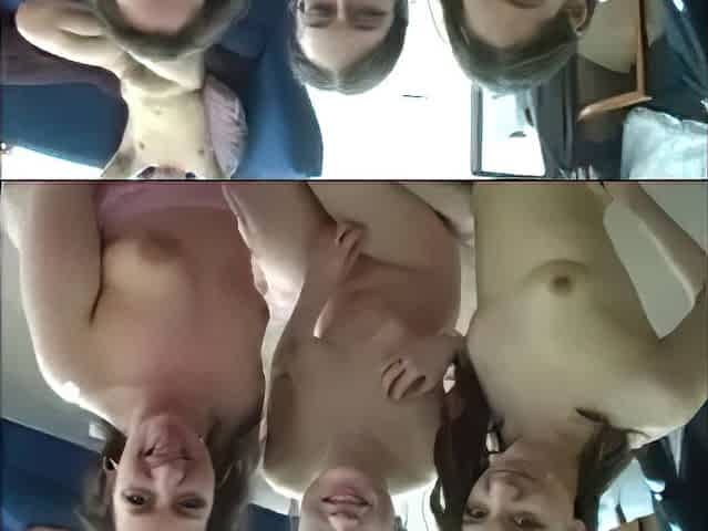 Sexy nubiles squad up to blow a fat cock