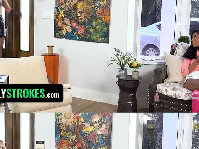 Familystrokes - chesty goth babe Jc Wilds and hot black stepsis Eden West share stepdaddy's boner